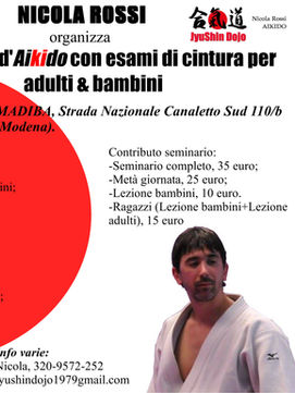 31 Marzo: Seminario d'Aikido al JyuShin Dojo, presso la sede di Cittanova (MO) a cura di Daniele Montenegro e Nicola Rossi.