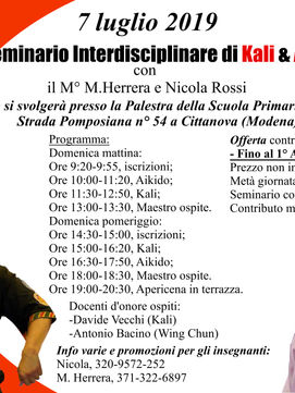 7 Luglio: 1° Seminario INTERDISCIPLINARE di AIKIDO&KALI, a cura di Nicola Rossi ed il M° Manuelito Herrera.